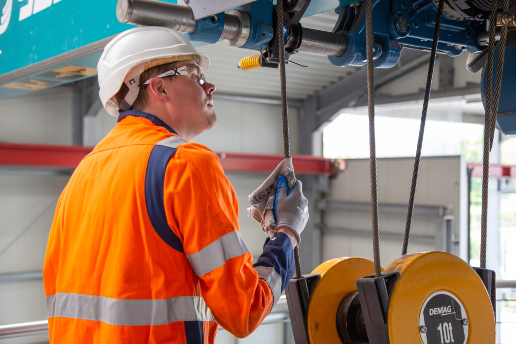 Sie sind verantwortlich für die Planung, den Neubau, die Inspektion sowie Reparatur- und Wartungsarbeiten von Krananlagen. Dabei arbeiten Sie auch mal in Höhen bis zu 20 Meter – natürlich immer top gesichert.